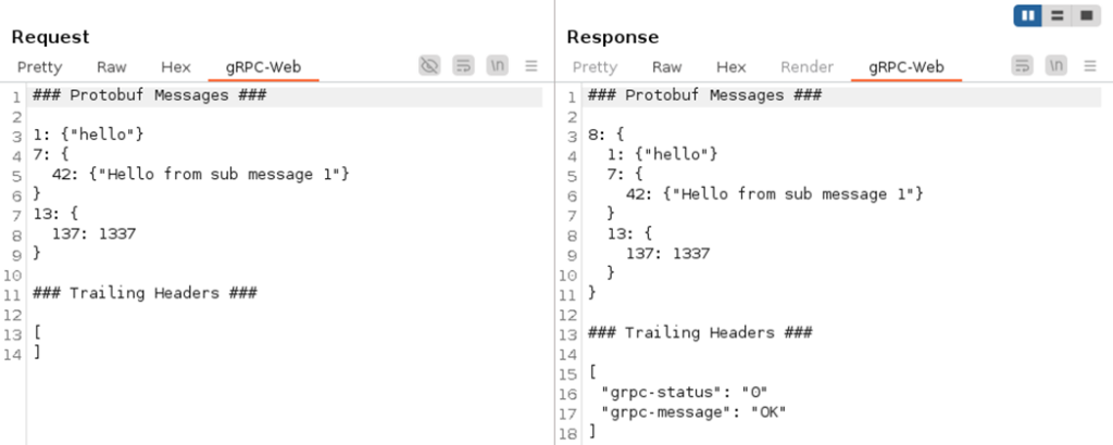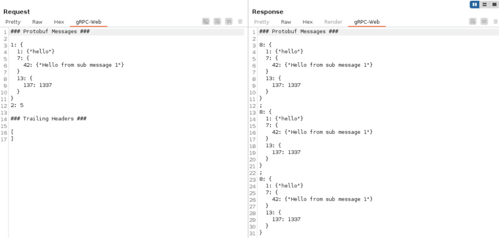 At the time of writing, the extension handles only gRPC-Web traffic, as Burp Suite does not yet support gRPC. However, since the encoding and decoding logic already works with plain gRPC messages, extending the functionality should be relatively straightforward once PortSwigger adds gRPC support to Burp Suite.