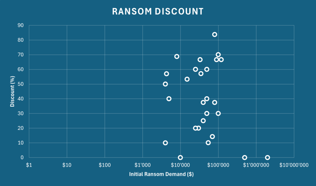 The initial ransom demands ranged from $2,000 to $2,000,000. While some victims paid the full amount, others were able to negotiate substantial discounts, some up to 80% off the original demand.