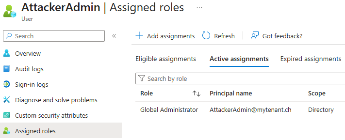 PS> $user = New-MgUser -AccountEnabled:$true -DisplayName "AttackerAdmin" -MailNickname "AttackerAdmin" -UserPrincipalName $upn -PasswordProfile @{ Password = $pwd; ForceChangePasswordNextSignIn = $false }